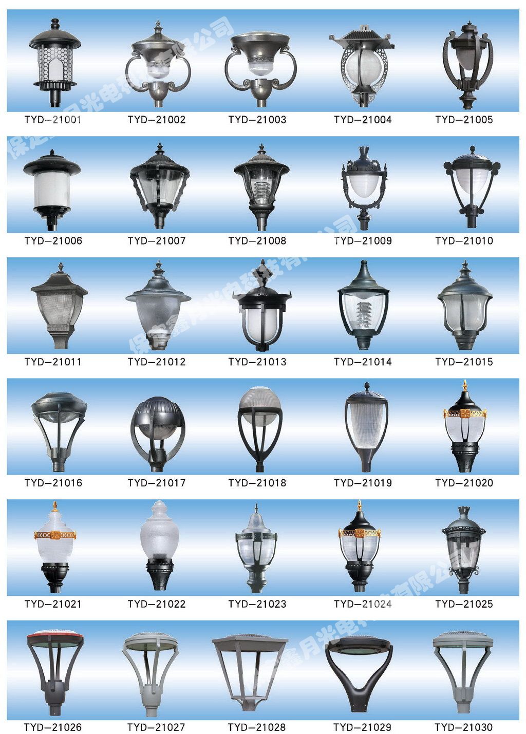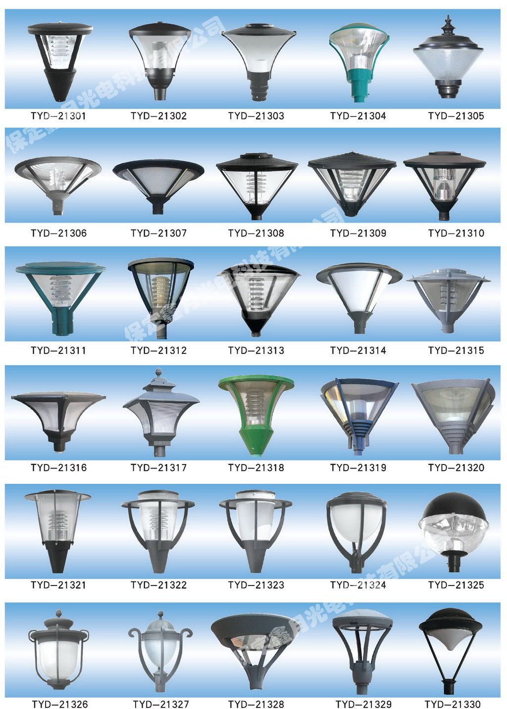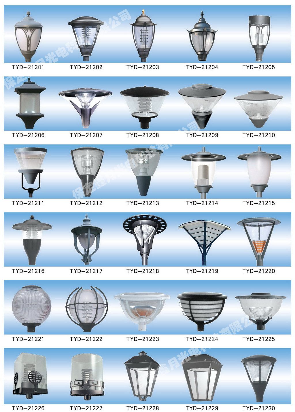太阳成tyc光电庭院灯灯头图集,为您介绍我公司庭院灯灯头产品画册